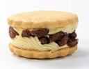 クッキーです。フレッシュバターとラム酒風味のレーズンをサンドし、口溶けの良い