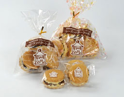 クッキーです。フレッシュバターとラム酒風味のレーズンをサンドし、口溶けの良い